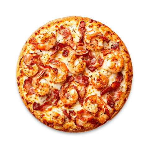 Queso mozzarella derretido, camarones flambeados y tocino crujiente. Una combinación intensa, jugosa y llena de carácter.