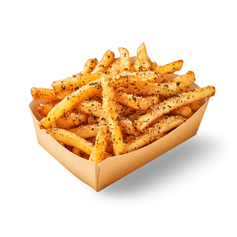 Crujientes papas a la francesa con ajo, queso parmesano y hojuelas de perejil